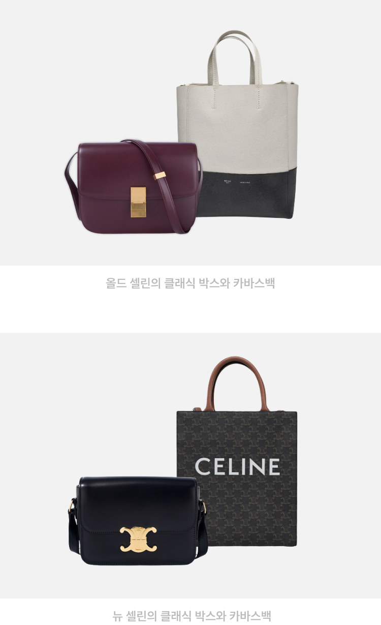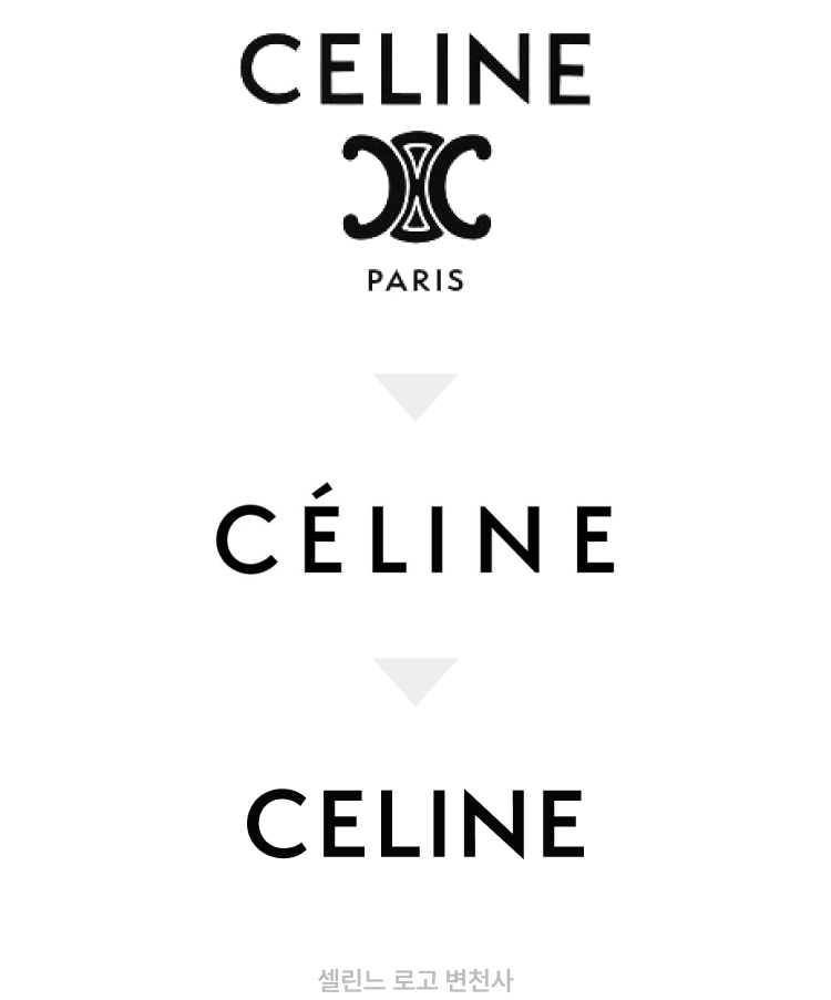 로고를 교체한다는 것이 쉬운 일은 아니지만 자신만의 새로운 무드와 라인을 선보이기 위해 로고 교체라는 과감한 결단을 내렸고, 피비 시절 사용되던 로고에서 É의 액센트를 제외하고 폰트 자간을 좁혀 새로운 밸런스를 구축했습니다. 초기 셀린느의 로고에는 E에 악센트가 없었다는 점과 브랜드 헤리티지에 좀 더 집중하고자 초기 로고를 재현한 로고를 선보인 것입니다. 피비가 셀린느를 떠남과 동시에 10여년을 함께한 로고도 동시에 역사 속으로 사라지며 올드 셀린느라는 명칭을 얻게 되었고, 에디 슬리먼이 이끄는 셀린느는 뉴 셀린느라고 불리게 되었습니다. 디자이너의 변경으로 올드, 뉴 라는 단어가 붙는 것은 이례적인 일이었는데 피비가 셀린느에 미친 영향이 얼마나 높았는지를 다시 한번 확인할 수 있는 대목이었습니다.