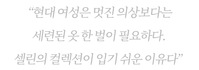 좋은 품질과 높은 품격을 의류에도 적용시키고자 했던 셀린 비피아나는 1967년 셀린느의 첫 번째 터닝포인트가 되는 레디투웨어 컬렉션을 선보입니다. ‘활동적인 여성들을 위해 고급스러운 소재를 사용하면서도 매일 입을 수 있는 옷을 만든다’는 철학으로 부유층이 아닌 새로운 중산층을 타깃으로 잡고 꾸민 듯 안 꾸민 듯한 느낌을 표현해내며 의류 업계에 성공적인 첫 발을 내딛었습니다.