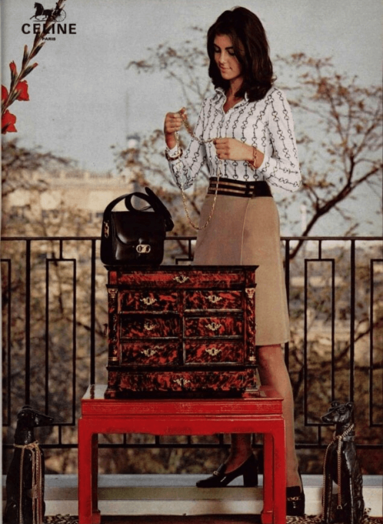 이 인기에 힘입어 1959년에는 신발 앞 코에 독특한 형태의 말 재갈 장식을 붙인 여성용 ‘잉카 로퍼(Inca Loafer)’를 제작하며 여성용 슈즈 브랜드로 영역을 확장하게 되었습니다. 잉카 로퍼로 대중적인 인기를 누리던 셀린느는 1966년 가죽을 활용한 다양한 아이템을 생산하기 시작했는데, 셀린느 클래식의 시작이 된 ‘포니백’을 포함하여 핸드백, 액세서리에 이르기까지 가죽 제품 컬렉션을 생산해내며 사업을 확장시켜 나갔습니다.